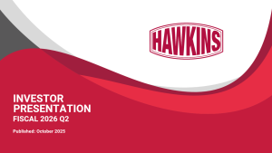 10-29-2025 HAWKINS, INC. REPORTS SECOND QUARTER FISCAL 2026 RESULTS
